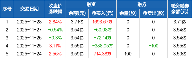 波长光电:融资净买入1693.67万元,融资余额3.71亿元(11-28)