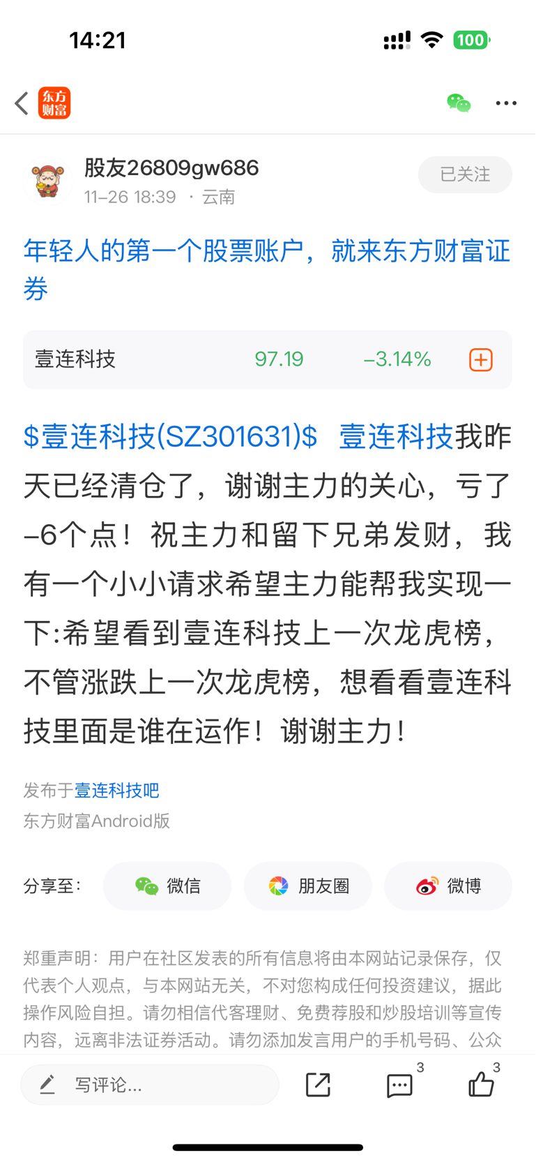 温馨提示: 1.根据《证券法》规定,禁止编造、传播虚假信息或者误导性信息,扰乱证券市场;2.用户在本社区发表的所有资料、言论等仅代表个人观点,与本网站立场无关,不对您构成任何投资建议。用户应基于自己的独立判断,自行决定证券投资并承担相应风险。《东方财富社区管理规定》