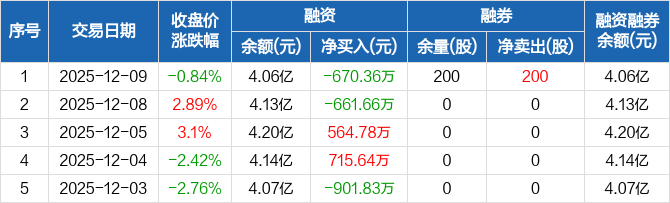 波长光电:融资净偿还670.36万元,融资余额4.06亿元(12-09)