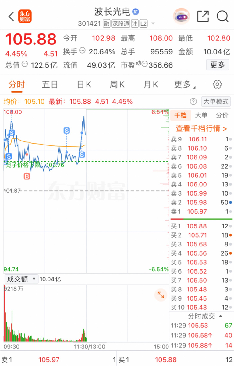 $波长光电(SZ301421)$ 做了个T,格局一下看看