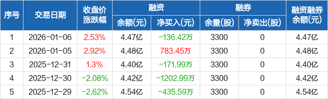 波长光电:融资净偿还136.42万元,融资余额4.47亿元(01-06)