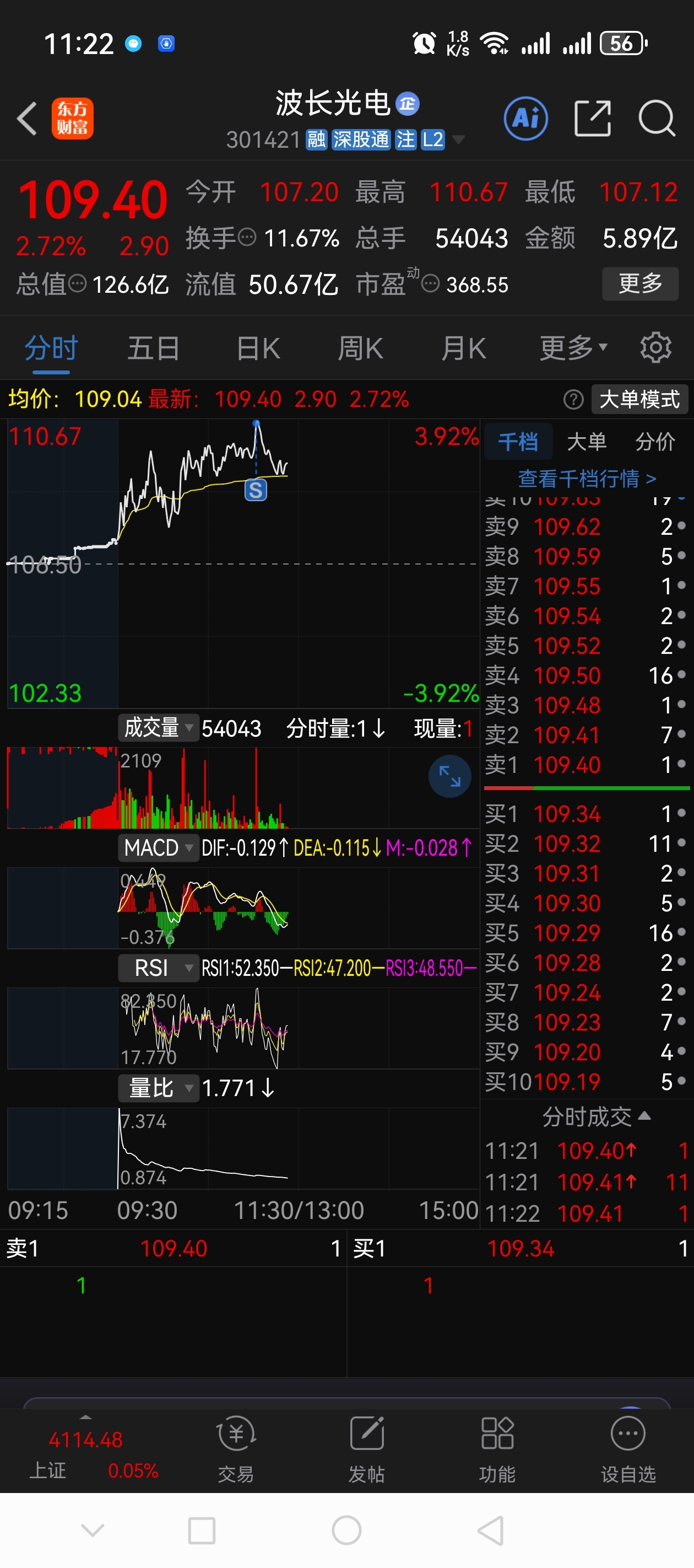 $波长光电(SZ301421)$ 早上随便挂了一个价格,感觉还会涨
