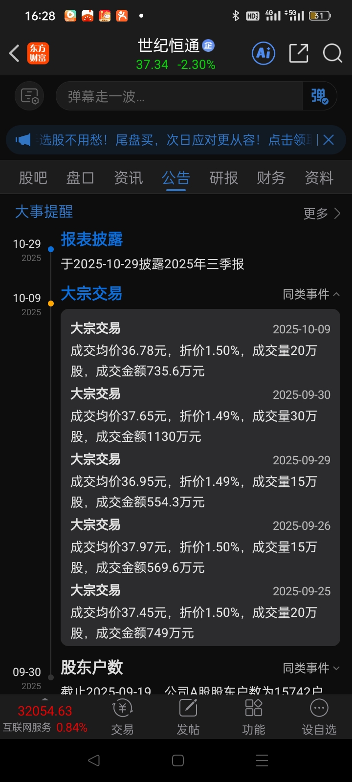$世纪恒通(SZ301428)$ 怎么天天折价大宗