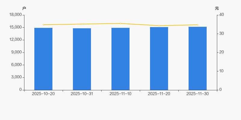自2025年10月31日以来,公司股东户数连续3期上涨,截至目前增幅为2.42%。2025年10月31日至2025年11月30日区间股价下降1.08%。
