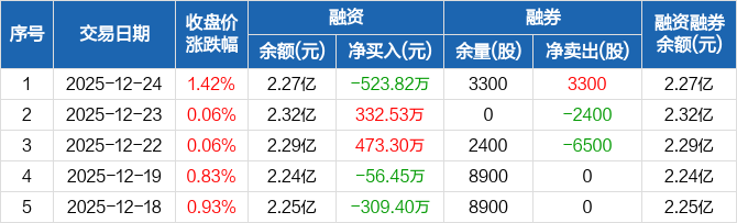 世纪恒通:融资净偿还523.82万元,融资余额2.27亿元(12-24)