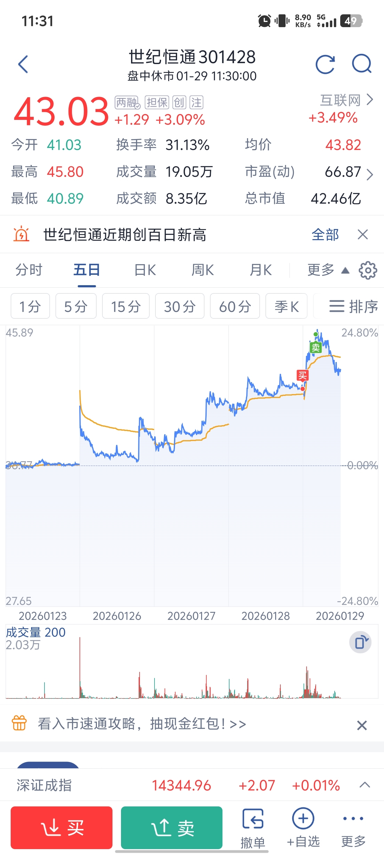 $世纪恒通(SZ301428)$ 不知不觉成交了