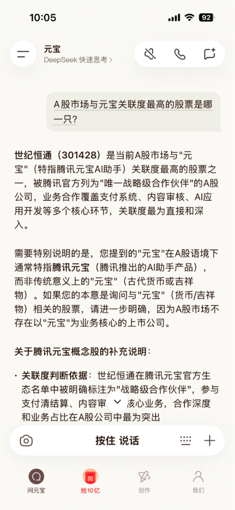 元宝自己说的