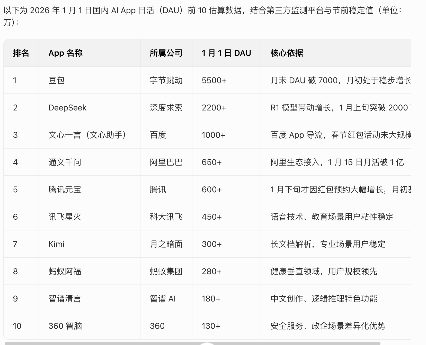2026年1月1日和2月1日国内aiapp日活对比腾讯元宝从第5名冲到第3名,腾