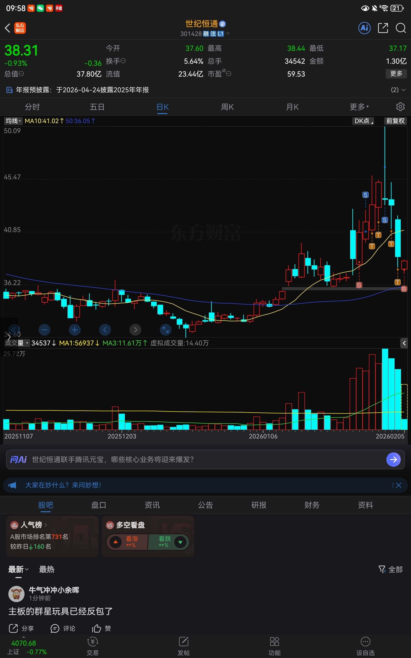 温馨提示: 1.根据《证券法》规定,禁止编造、传播虚假信息或者误导性信息,扰乱证券市场;2.用户在本社区发表的所有资料、言论等仅代表个人观点,与本网站立场无关,不对您构成任何投资建议。用户应基于自己的独立判断,自行决定证券投资并承担相应风险。《东方财富社区管理规定》