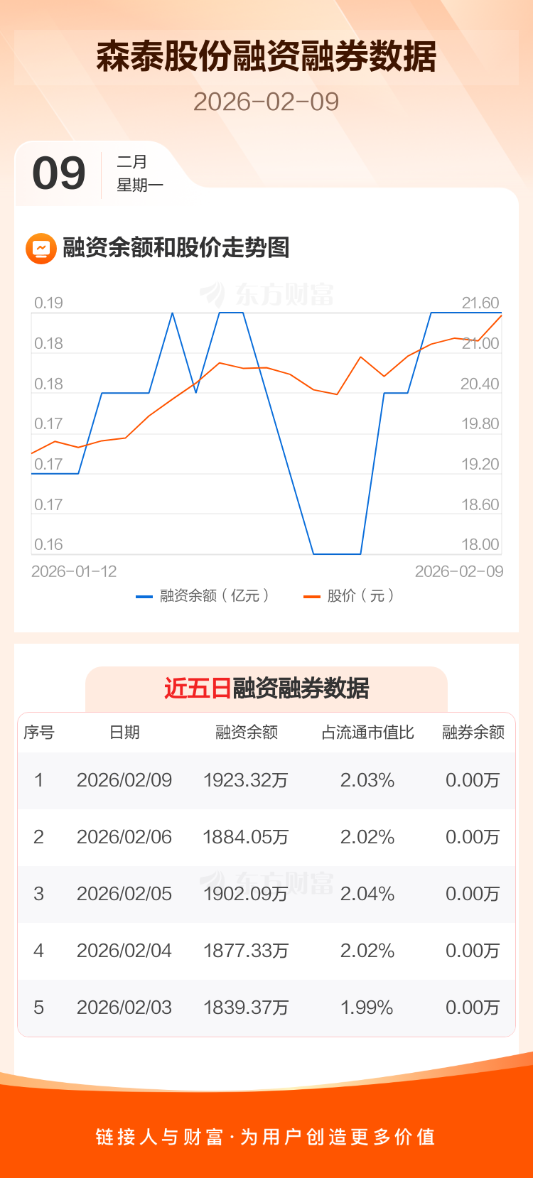 交易所最新数据显示,森泰股份于2026年2月9日获融资买入333.30万元,融资偿还294.03万元,当日融资净买入39.27万元。目前,该股融资余额1923.32万,占流通市值比例为2.03%。