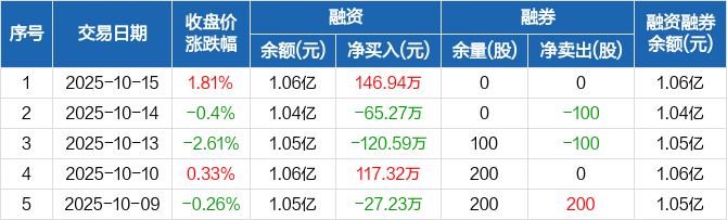 泓淋电力:融资净买入146.94万元,融资余额1.06亿元(10-15)