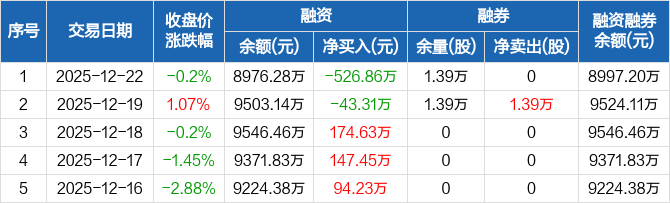 泓淋电力:融资净偿还526.86万元,融资余额8976.28万元(12-22)