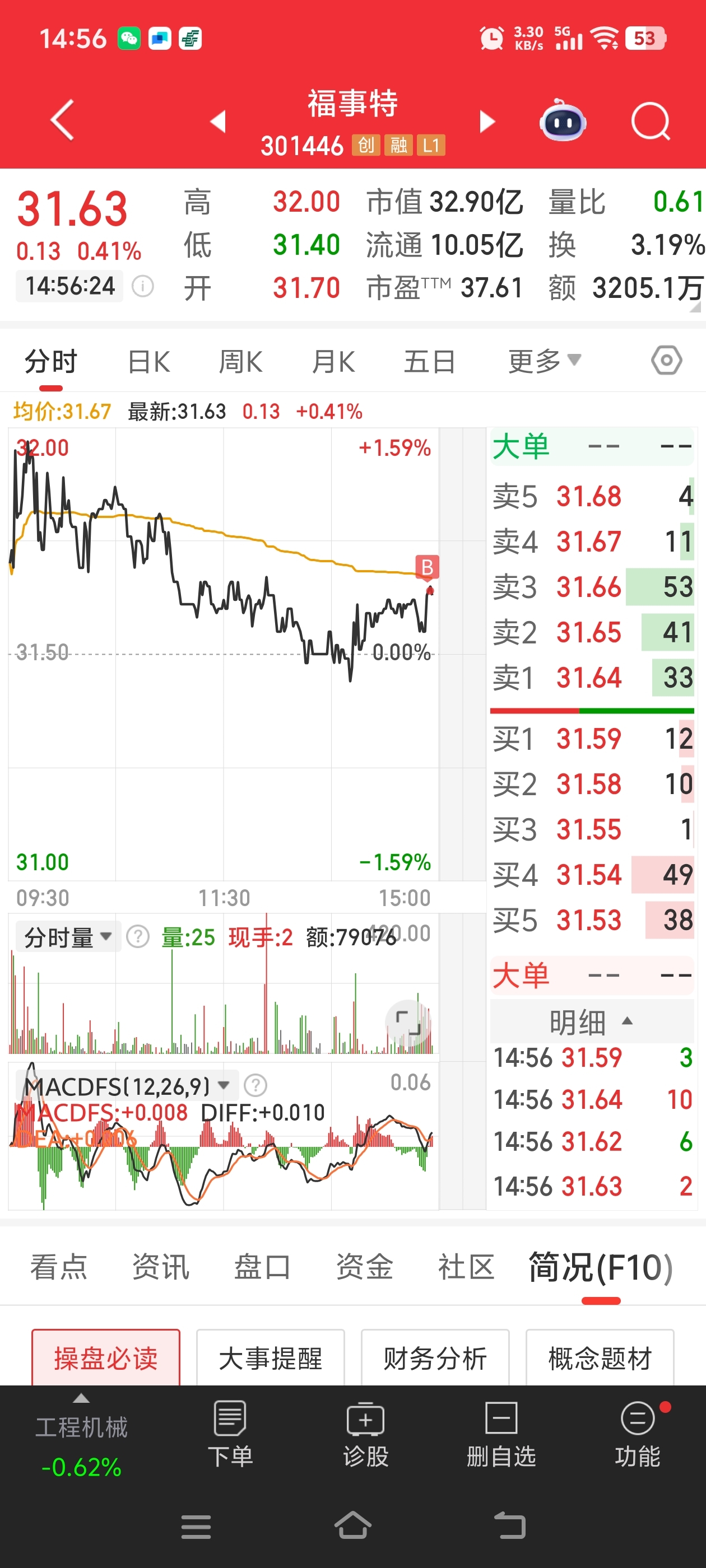 $福事特(SZ301446)$ 记录自己,不做交易推荐,谢谢平台,朋友们走不走?昨天尾盘进的