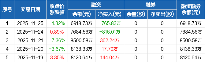 福事特:融资净偿还765.83万元,融资余额6918.73万元(11-25)