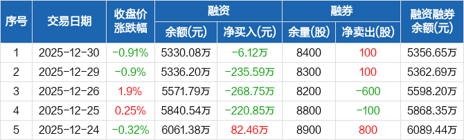 福事特:连续4日融资净偿还累计731.31万元(12-30)