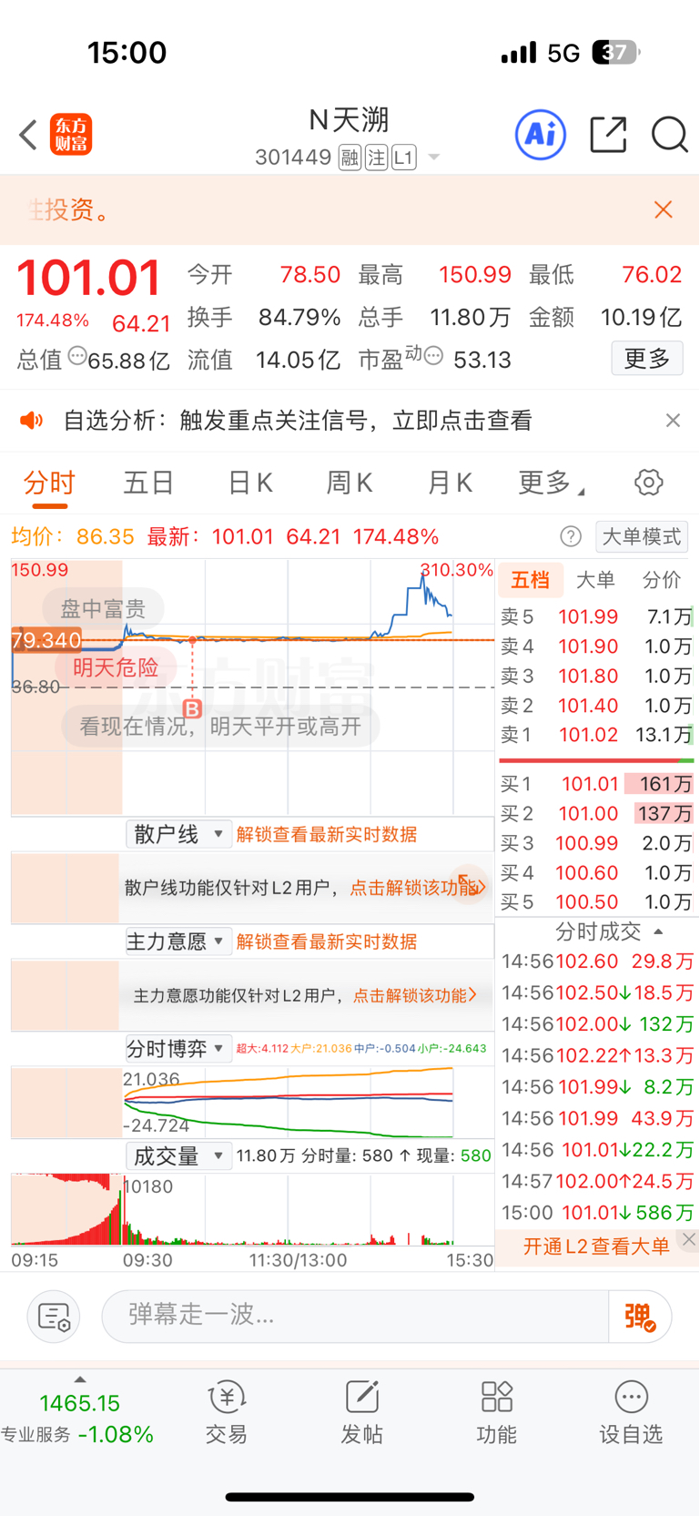 $N天溯(SZ301449)$ 明天竞价挂80走人