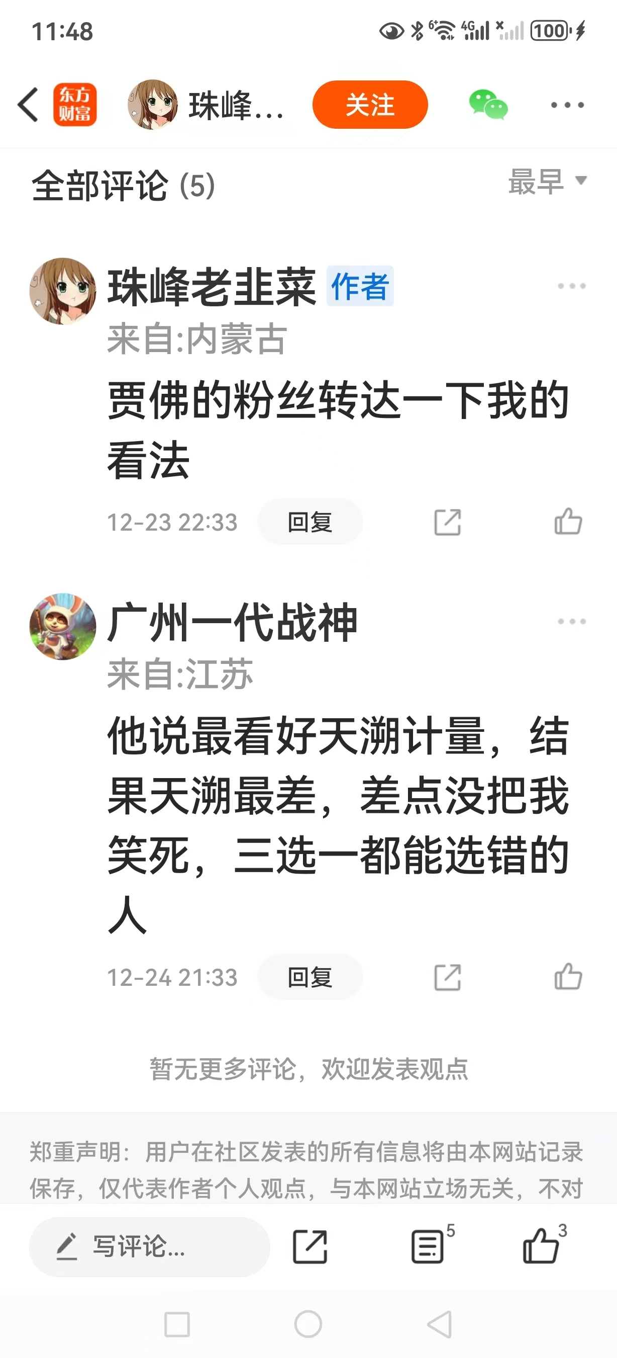 $C天溯(SZ301449)$ 这是我的粉丝朋友截图给我的, 我就纳闷了,你们俩都被我拉黑半年了,你们是怎么看到我的观点的?你们是不是有B啊?你发你们的财去啊,咱们井水不犯河水不好吗?这世上怎么还有这些脏东西?