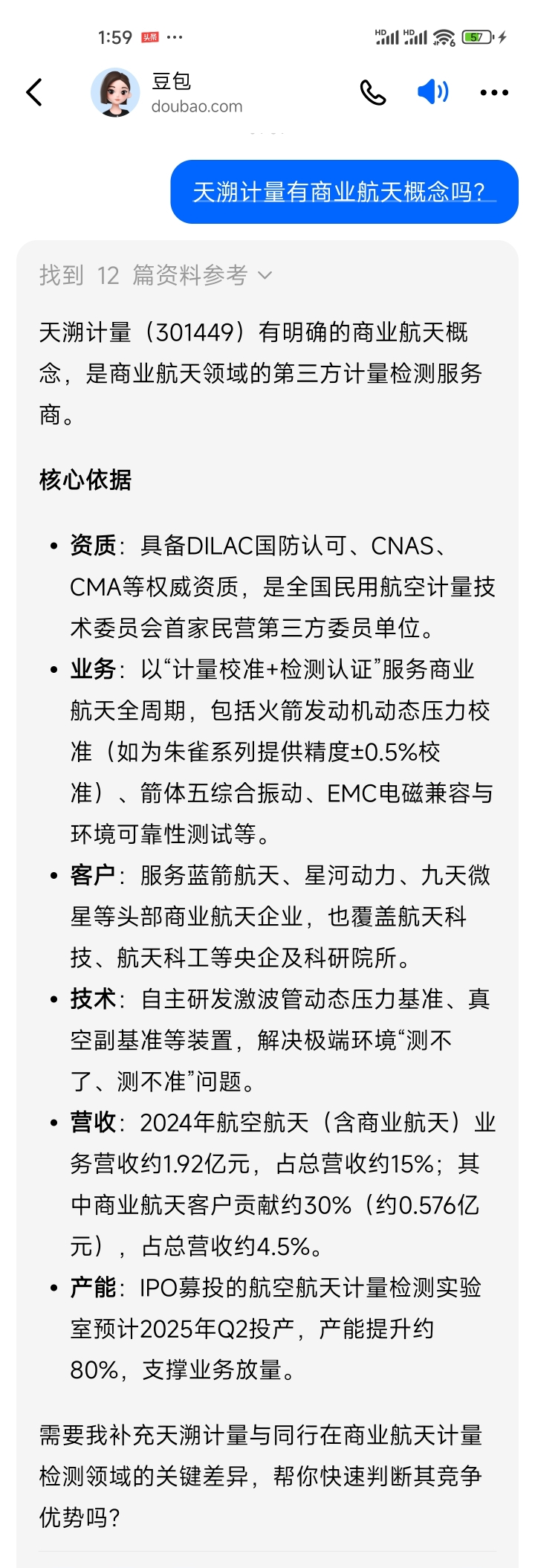 $天溯计量(SZ301449)$ 商业航天概念硬梆梆,2024年航天航空收入1.92亿元,被市场遗漏的大牛股题材!下周开盘追二千股。