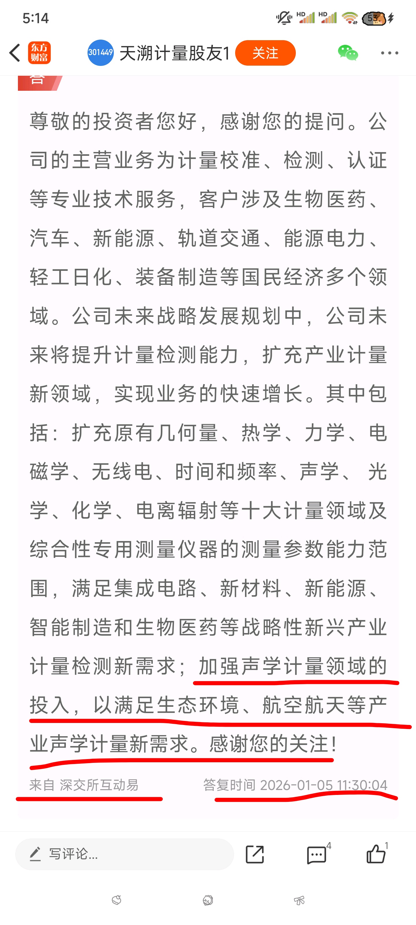 $天溯计量(SZ301449)$ 这不是有航空航天,董秘回答了,还问什么,商业航天回调了啊,等二波在起吧