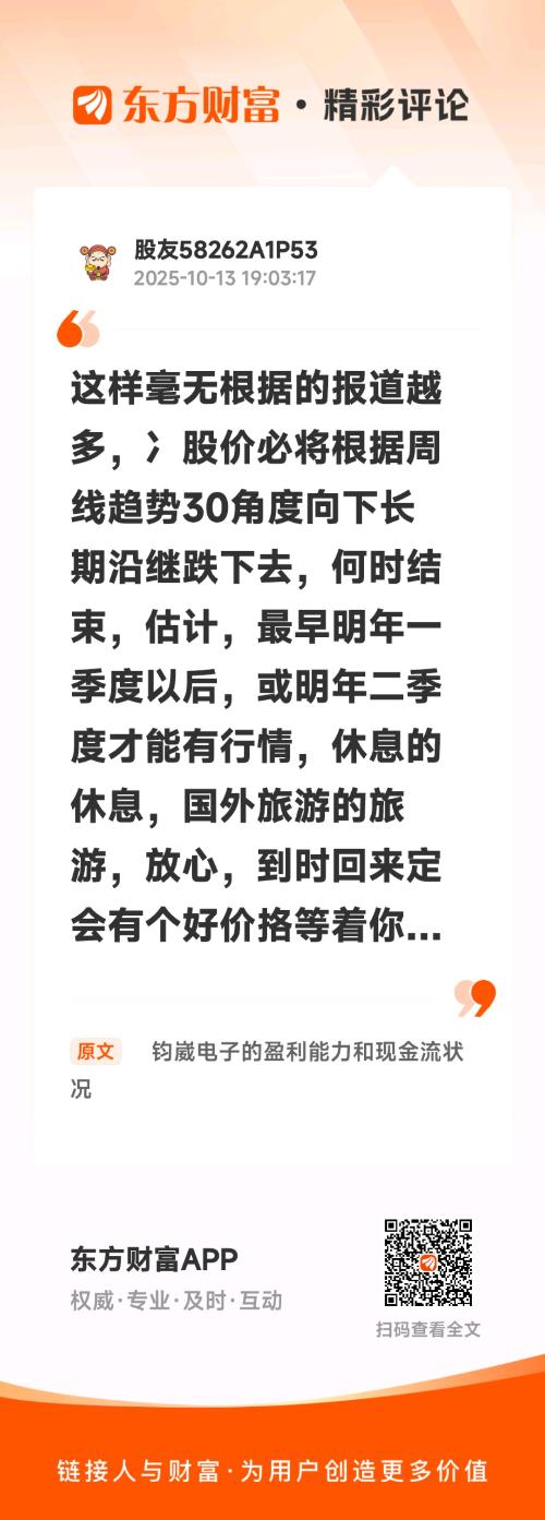 $钧崴电子(SZ301458)$ 钧崴电子的盈利能力和现金流状况非常健康,是其高质量发展的重要体现。