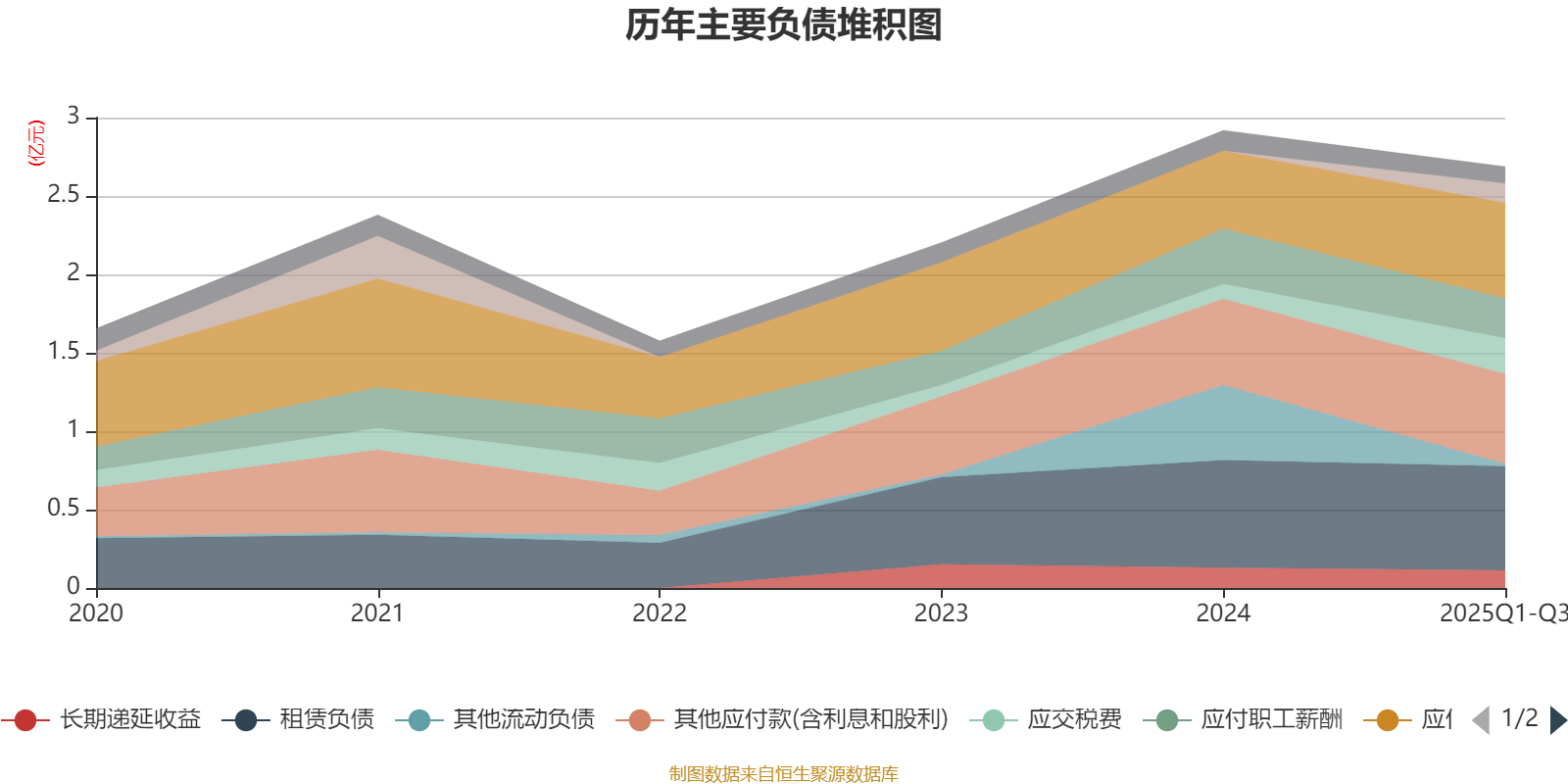 负债重大变化方面,截至2025年三季度末,公司其他流动负债较上年末减少96.9%,占公司总资产比重下降3.73个百分点;租赁负债较上年末减少3.14%,占公司总资产比重下降2.01个百分点;应付职工薪酬较上年末减少27.7%,占公司总资产比重下降1.49个百分点;其他应付款(含利息和股利)较上年末增加4.2%,占公司总资产比重下降1.41个百分点。