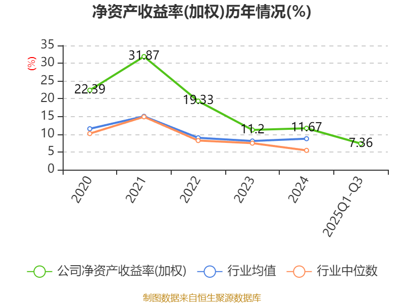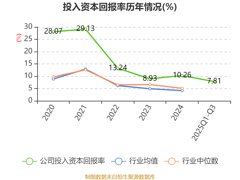 盈利能力方面, 2025年前三季度公司加权平均净资产收益率为7.36%,同比下降2.83个百分点。公司2025年前三季度投入资本回报率为7.81%,较上年同期下降1.18个百分点。