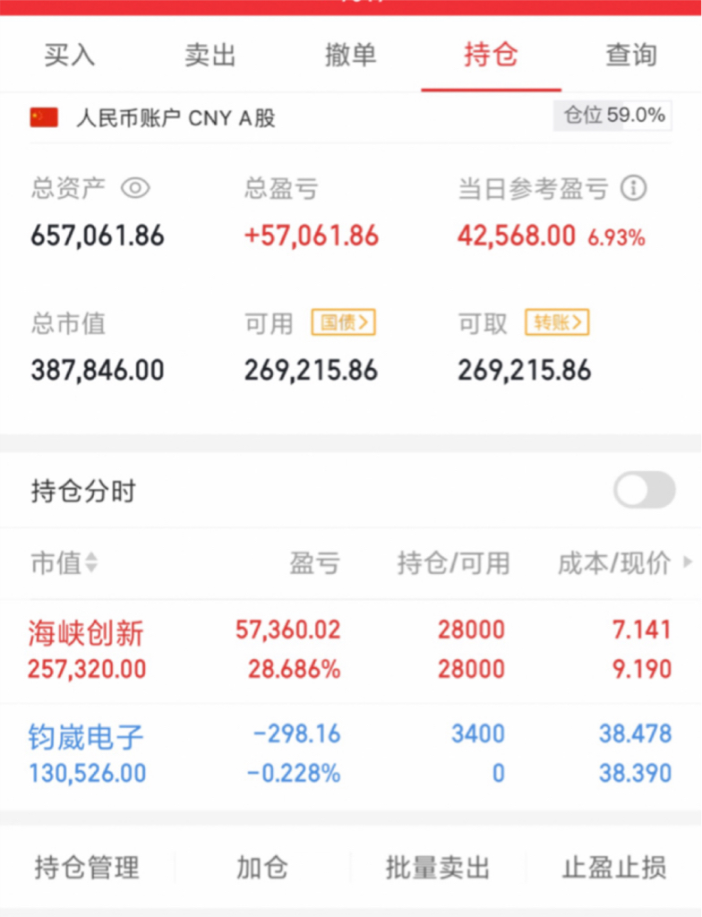 【60W炒股之旅|第2天】今日实盘操作简记:•继续持有:海峡创新卖出:买入:钧崴