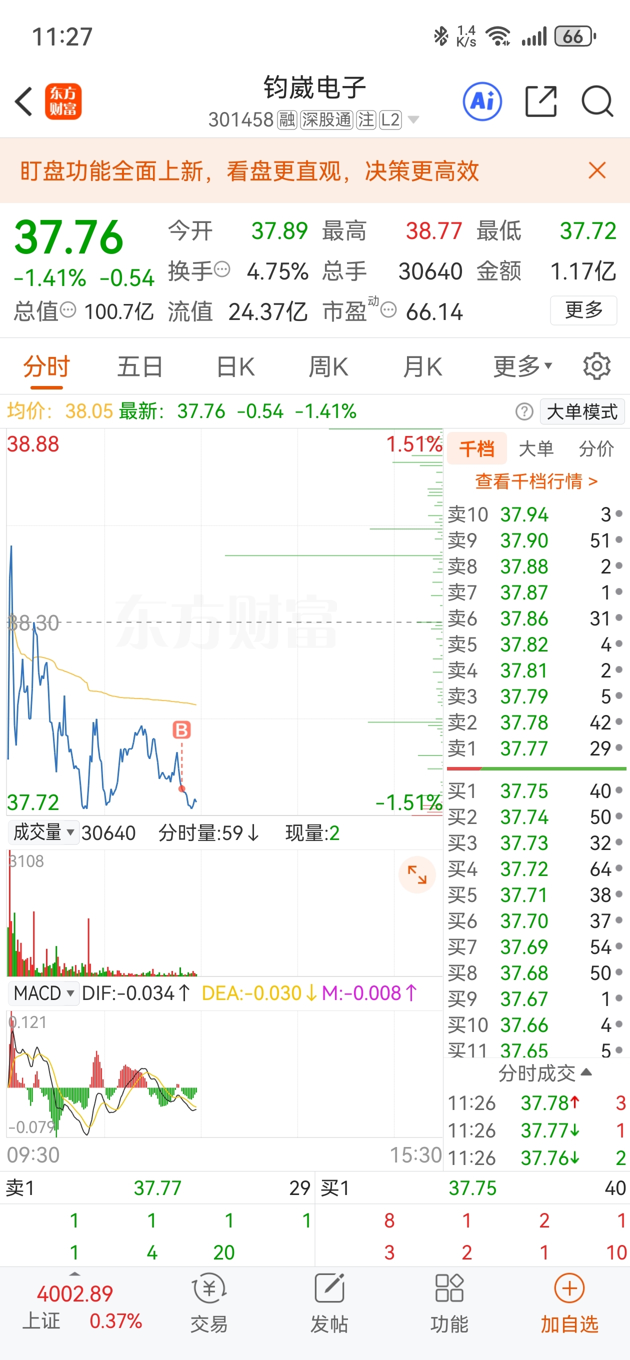 $钧崴电子(SZ301458)$ 今天有空看到绿了就加仓,今天直接搞3手!