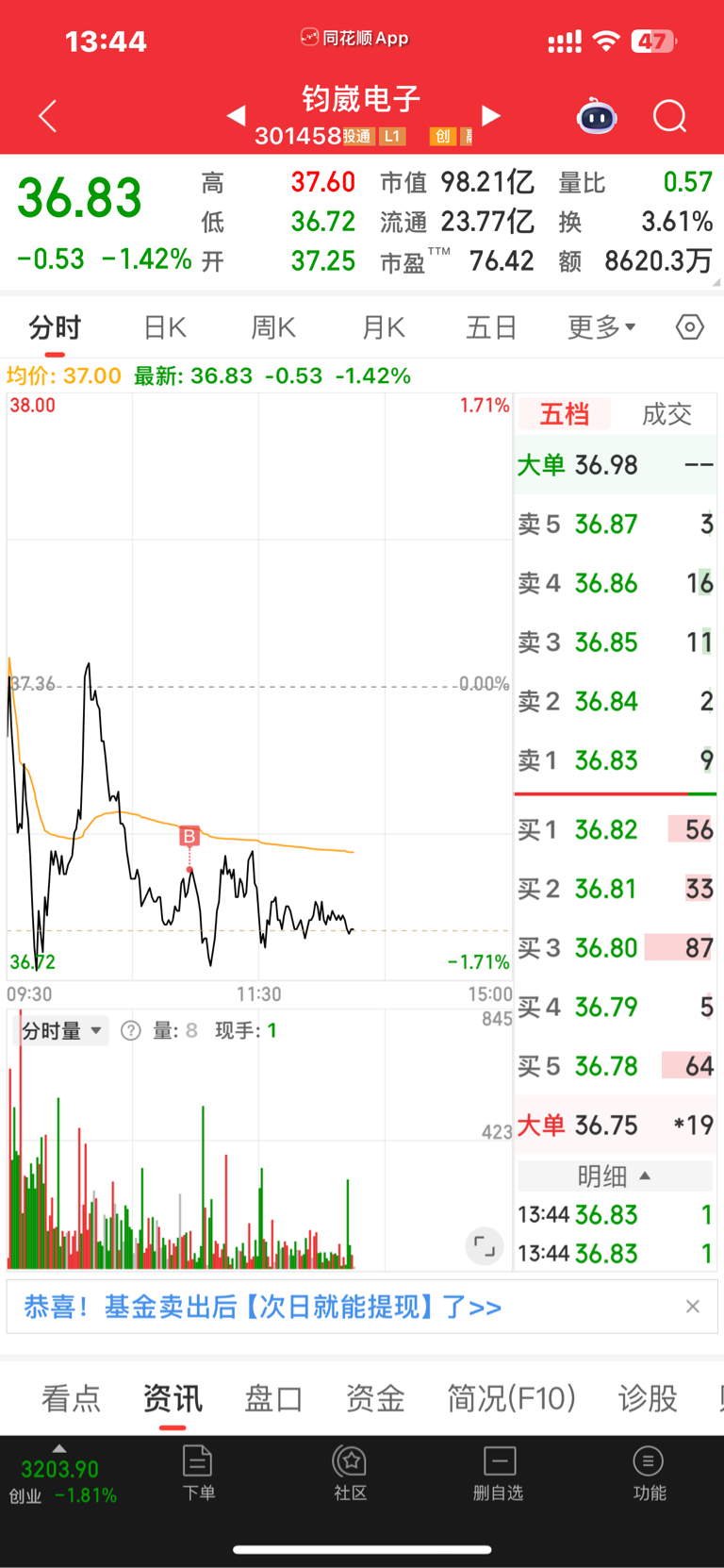$钧崴电子(SZ301458)$ 回调差不多了 开始加仓