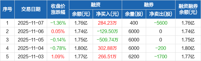 钧崴电子:融资净买入284.23万元,融资余额1.76亿元(11-07)