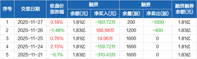 钧崴电子:融资净偿还160.72万元,融资余额1.81亿元(11-27)