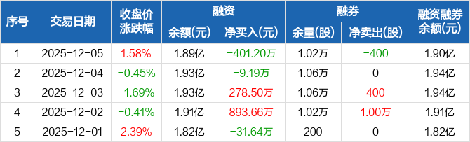 钧崴电子:融资净偿还401.2万元,融资余额1.89亿元(12-05)