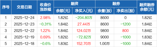 钧崴电子:融资净偿还204.8万元,融资余额1.82亿元(12-24)