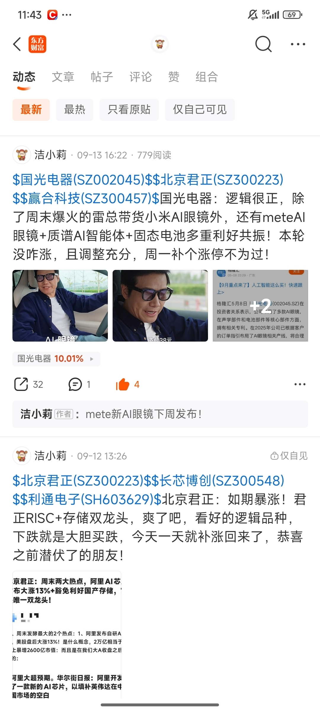 $丰茂股份(SZ301459)$ $国光电器(SZ002045)$ 之前低位挖掘的国光电器,再次涨停!字节耳机+mete眼镜+固态电池,恭喜,涨了不追,关注低位最正宗,孙姐强call,机器人+光刻机+AIDC液冷的丰茂股份逻辑够硬,节后20CM补涨预期不为过!