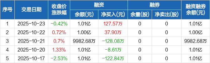丰茂股份:融资净买入127.57万元,融资余额1.01亿元(10-23)