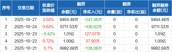 丰茂股份:融资净偿还247.06万元,融资余额9464.48万元(10-27)