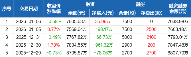丰茂股份:融资净买入35.99万元,融资余额7605.63万元(01-06)