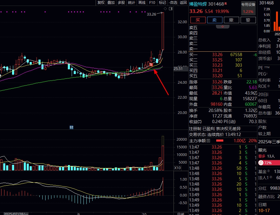 $博盈特焊(SZ301468)$ 上周买入的博盈特焊,今天惊喜中出一半,短线客明天冲高准备跑路。换点趋势回踩5日线的股