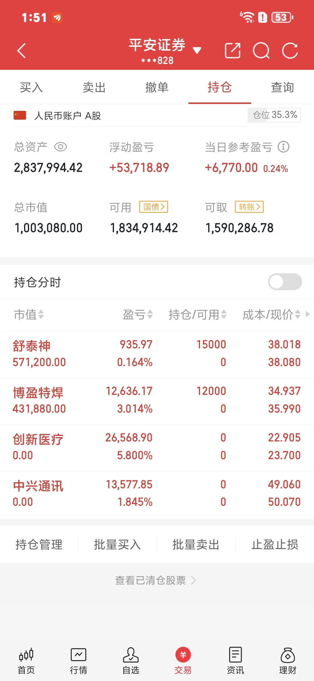 今日进入:今日持有:今日卖出:中兴通讯这只是我的个人交易笔记,不构成任何投资建议