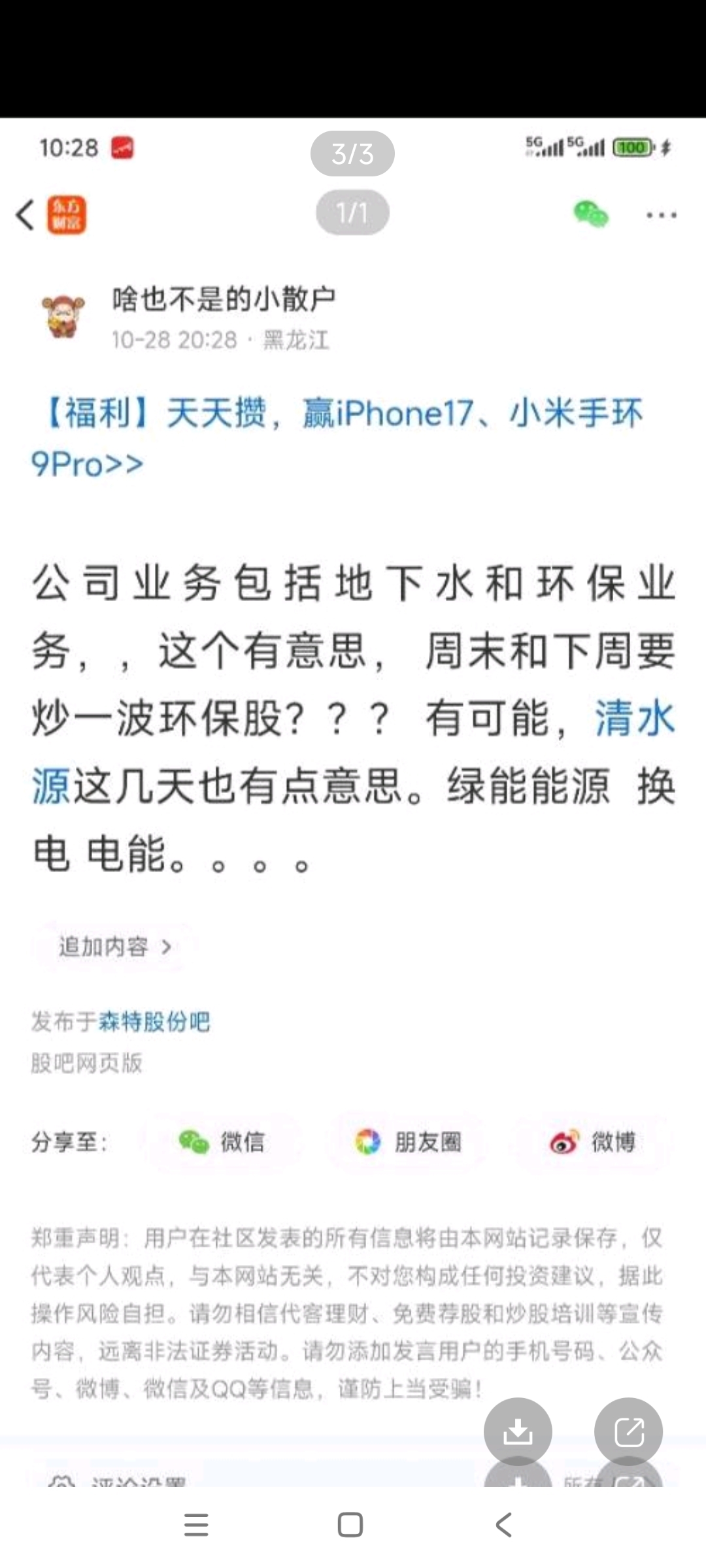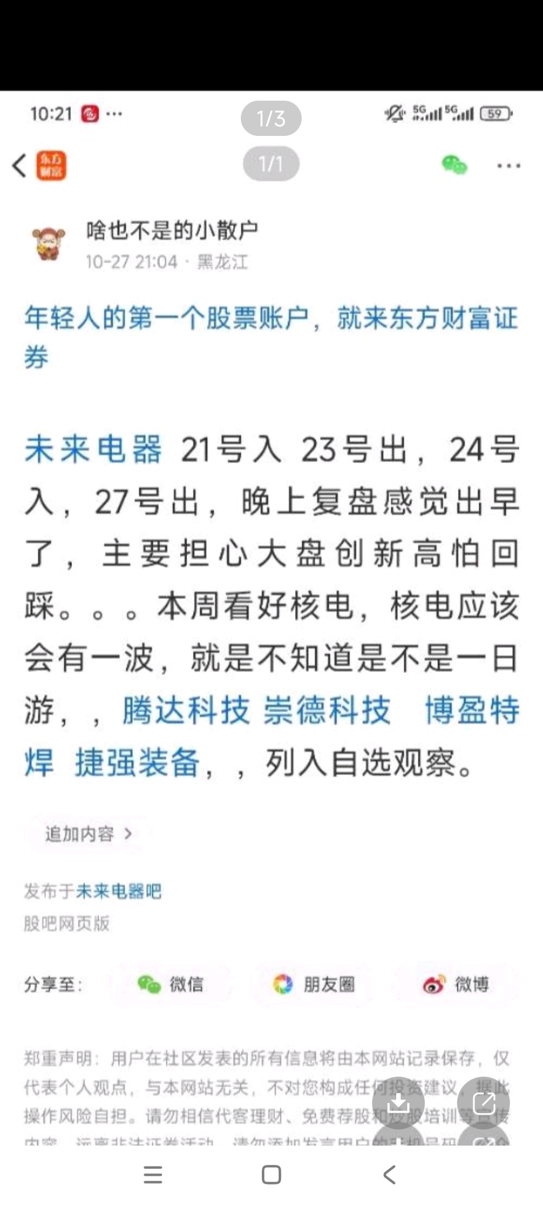 温馨提示: 1.根据《证券法》规定,禁止编造、传播虚假信息或者误导性信息,扰乱证券市场;2.用户在本社区发表的所有资料、言论等仅代表个人观点,与本网站立场无关,不对您构成任何投资建议。用户应基于自己的独立判断,自行决定证券投资并承担相应风险。《东方财富社区管理规定》