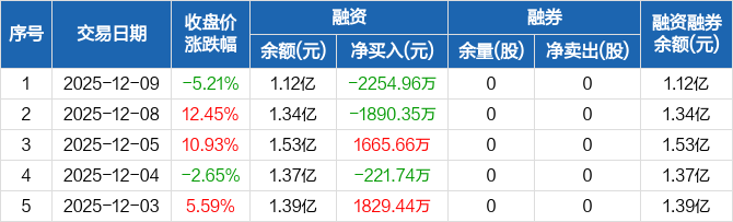 博盈特焊:融资净偿还2254.96万元,融资余额1.12亿元(12-09)