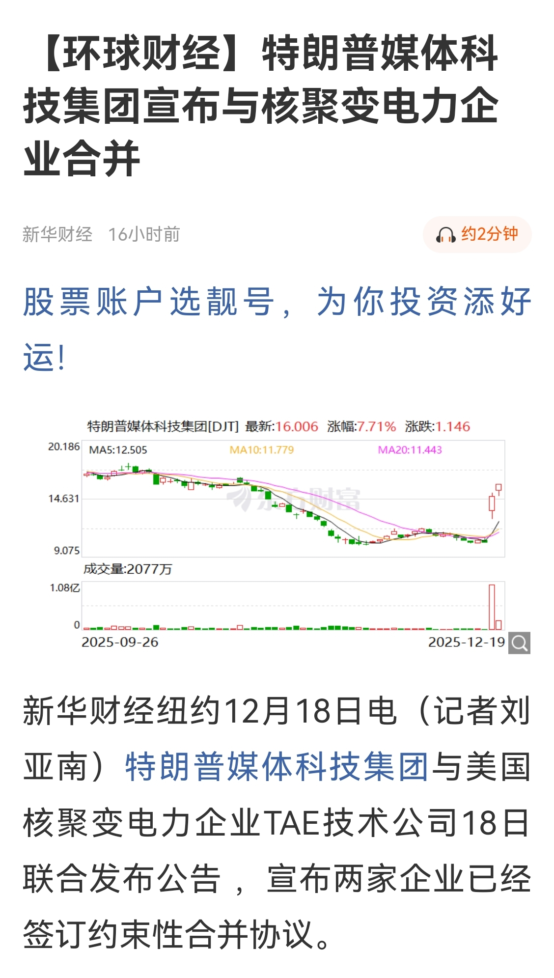 特朗普媒体科技集团宣布与核聚变电力企业合并