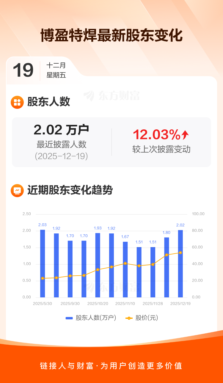 博盈特焊:截至12月19日最新股东户数2.02万户,较上期增加12.03%