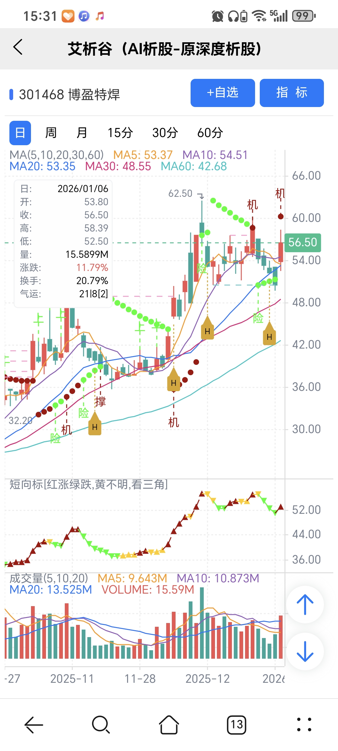 机会:股价上穿艾短波或绿变红、红字;