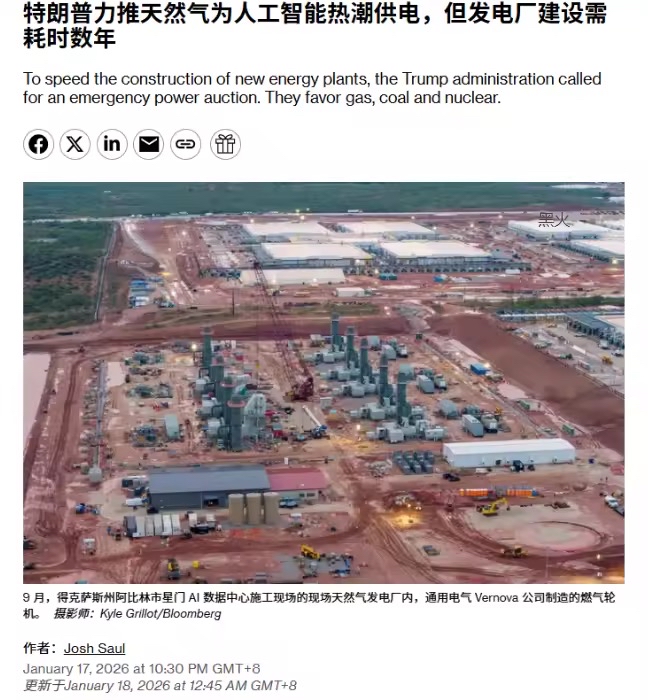 特朗普力推天然气为人工智能热潮供电,但发电厂建设需耗时数年为加速新能源电厂的建设