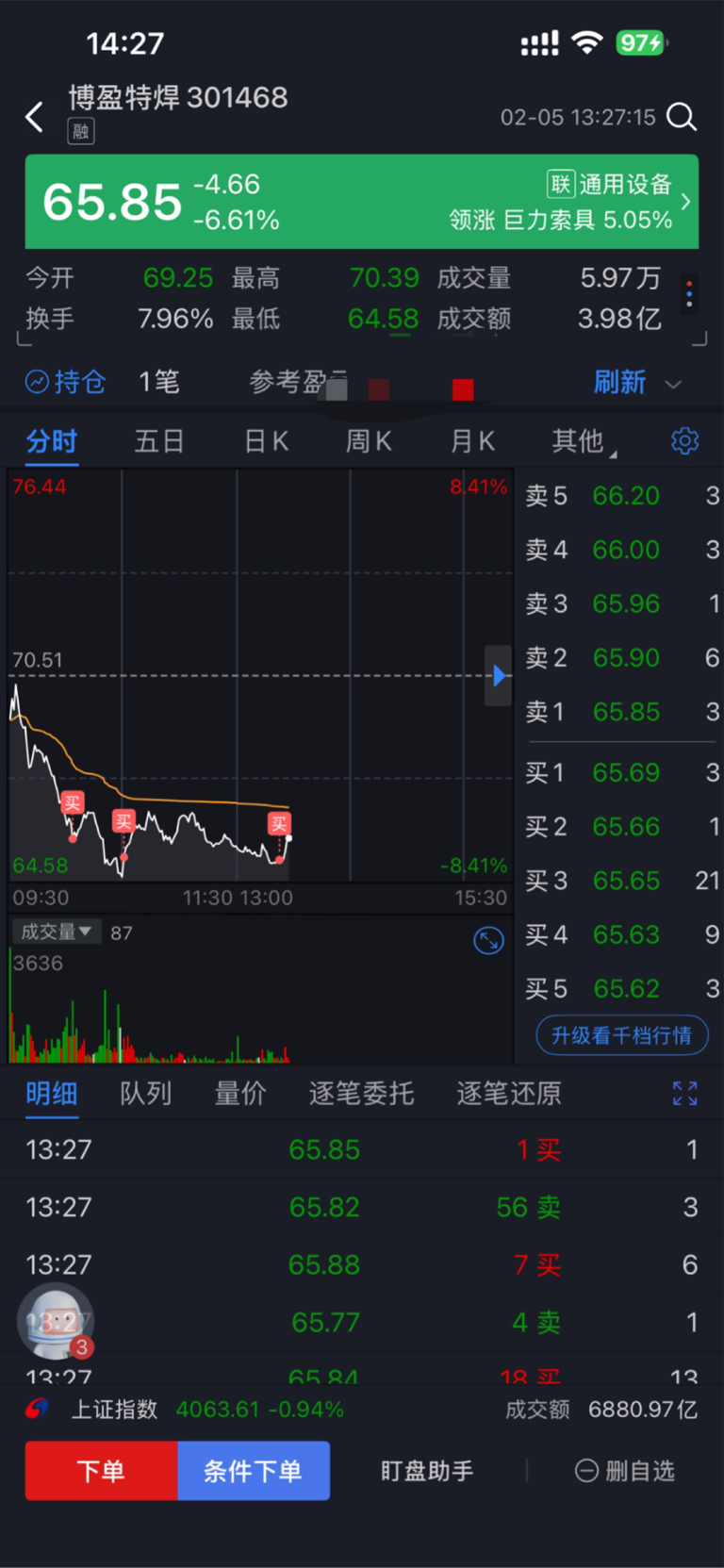 $博盈特焊(SZ301468)$ 越看越喜欢,于又加了一笔。美国缺电长期存在嘛,越南工厂不是满产吗,竞对能替代吗?回答这三个问题告诉我,随大盘下跌你们敢不敢,,可恶的是$宏昌电子(SH603002)$ 今天也水下,不然都转过来,直接加