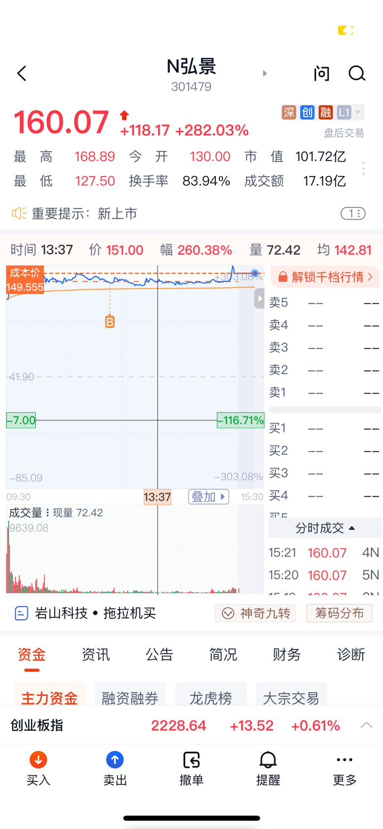 $N弘景(SZ301479)$ 拿着通信做T的利润小买了3手,老哥好久没碰新股了,没办法观察了很久忍不住了,题材和盘面资金都是很诱惑,今天少说2-3个机构吧