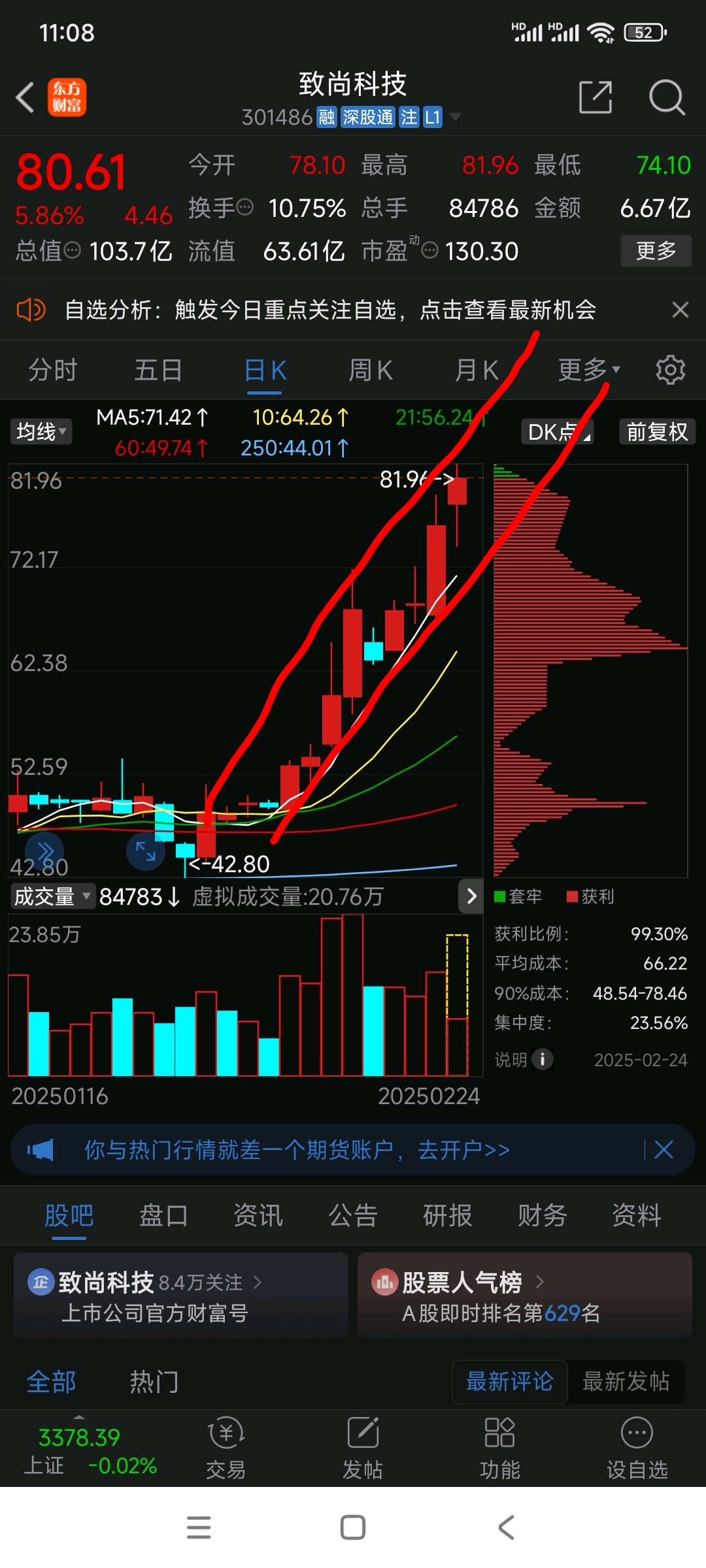 $致尚科技(SZ301486)$ 放心!今天涨不上去!我前几天就说了,这股按照5日均线走的!目前偏离均线太远,明天还有回调需求!