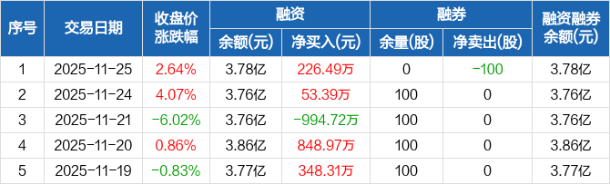 致尚科技:融资净买入226.49万元,融资余额3.78亿元(11-25)
