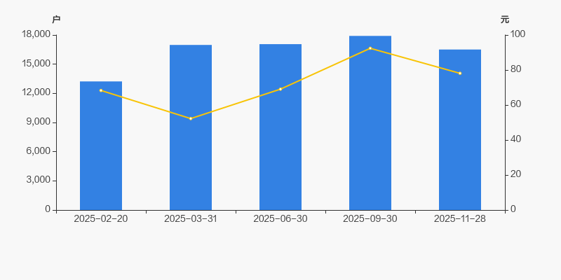 2025年2月20日至今,公司股东户数显著增长,区间涨幅为24.82%。2025年2月20日至2025年11月28日区间股价上涨14.33%。